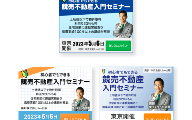 同じテーマで制作したバナーです。3パターン制作しました。 タ …